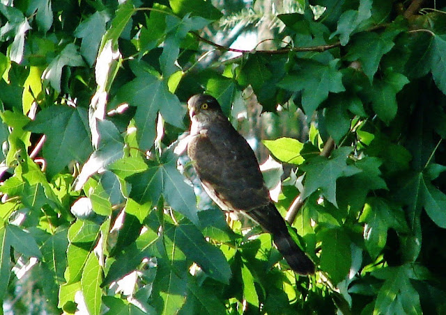 The Sparrow Hawk, perched on a tree on our drive way. I shot into the sun, through our lounge window to get this poor image. It was a huge surprise for me to see it again, as I had seen it for the first time only the day before.