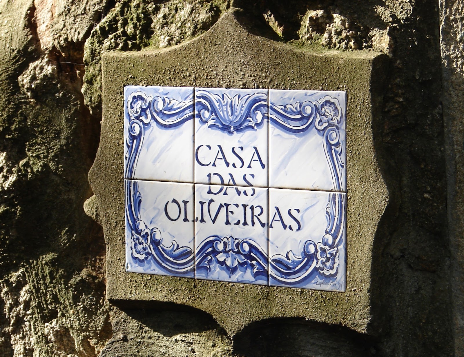 Typical blue and white tiles with the name of the house, which is "Olive Tree's House"