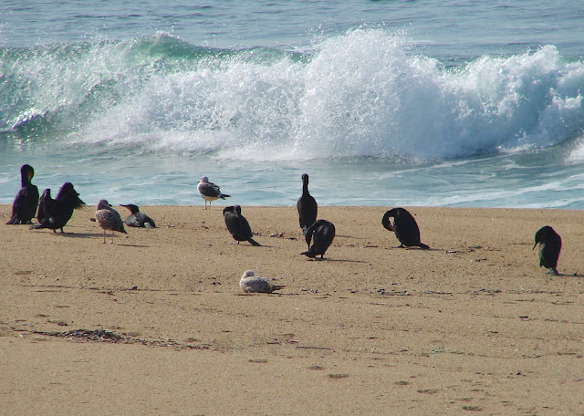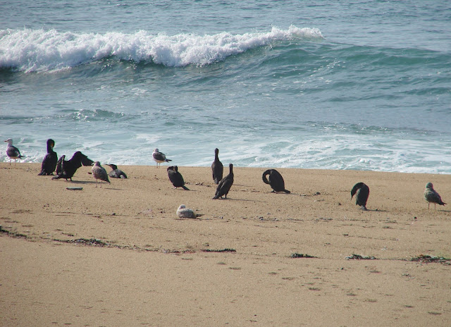 We saw many seagulls, only one plover, but large gatherings of Cormorants near the water's edge. I was so fascinated by everything we saw that I also took photos of  the nets and traps as well.