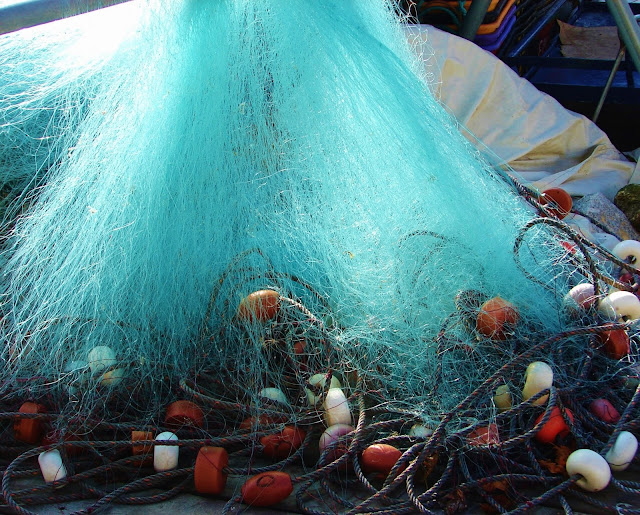 Last year, hubby and I visited a little fishing village where we were hoping to see the fishermen mending their nets, and perhaps the arrival of the fishing boats, when sea birds gather for the pickings.
