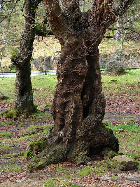 The gnarled trees there, are very old and full of crevices and  holes, which attract certain kinds of birds, and the moss covered stones and walls also attract insects, but today I am sharing a few Nuthatch images, and the natural environment.