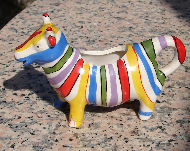Every so often I like to share something typically Portuguese, and over the years, I have collected twenty four cow creamers, some of which were bought in the Algarve, in a place called Lagos. It's my favourite shop to visit whenever we spend the day there, with the hope of adding one more cow creamer to my collection, and also to see all the beautiful plates. As I'm still not able to get outside, here are a few examples of the colourful hand made "louça" which is sold here in Portugal. We will be traveling to the Algarve again this week, in search of the beneficial warmth of our southern climate, and staying for at least two months, so this will be my last post before we leave.