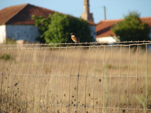 The stonechat is a sweet bird we encountered quite frequently on our walks in the Algarve. As it's name suggests, Stonechats utter a sharp loud call, that sounds like two stones being tapped together.