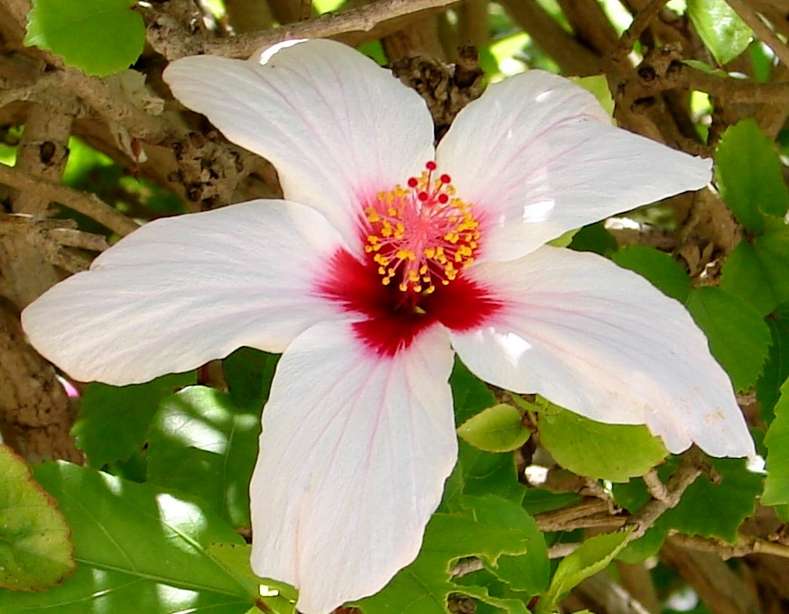 This flower is from one of the Hibiscus shrubs in the garden. |