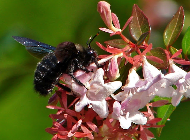 The Carpenter Bee   Xylocopa  violácea  on Beauty bush.