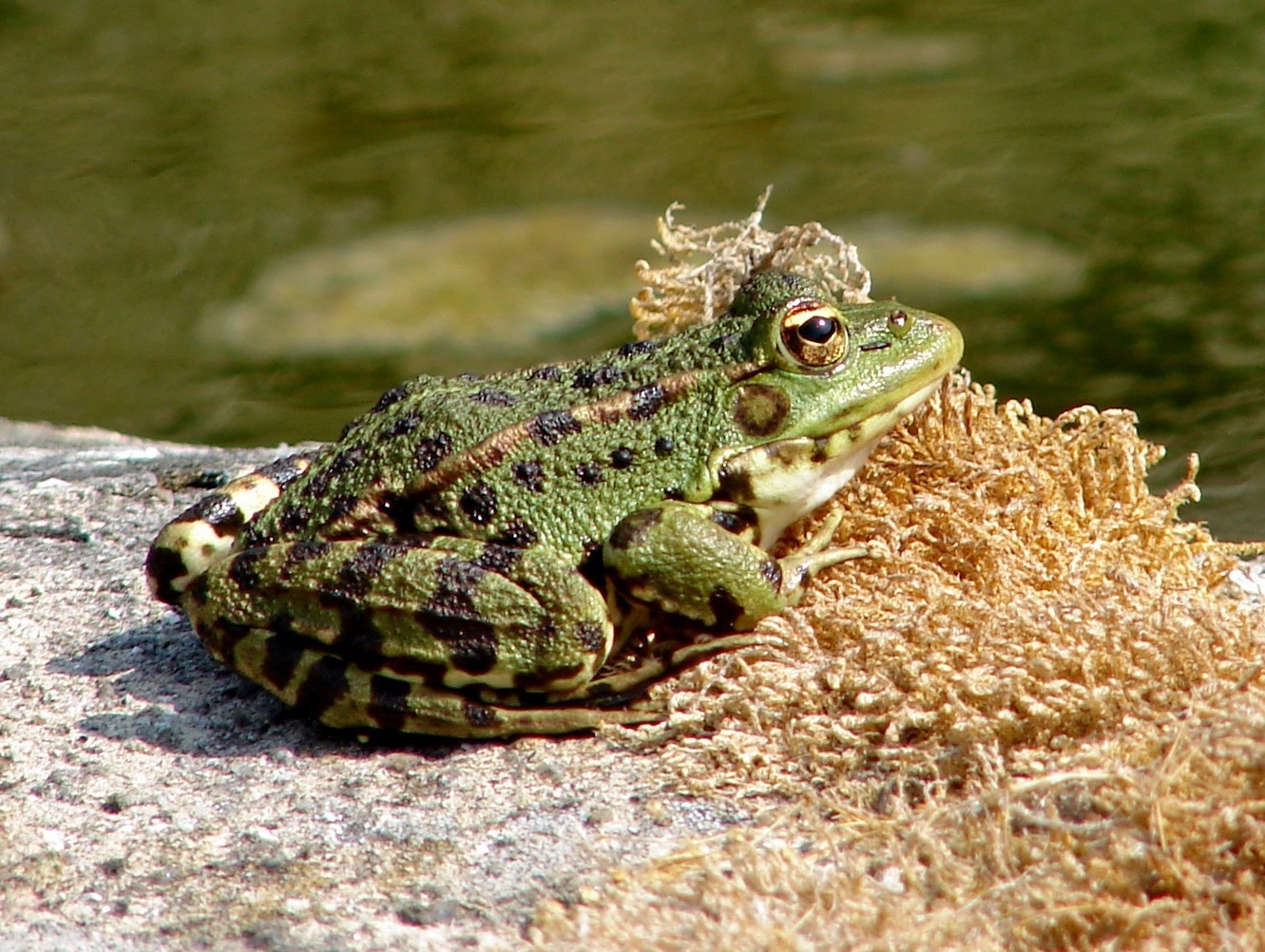 A  Marsh Frog  sunbathing near our water tank ...