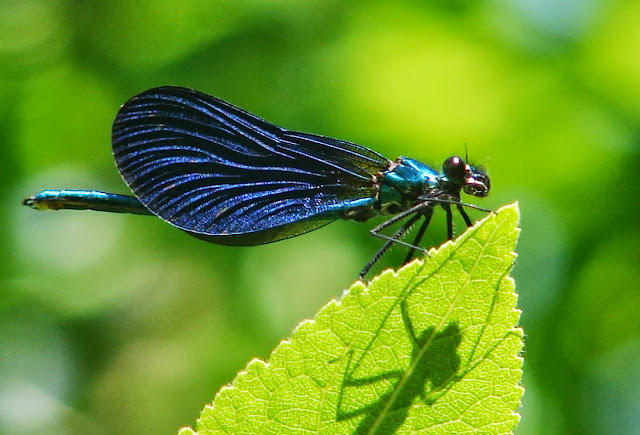 Both male and female visited my garden last week. Today I would like to show you the beautiful male Camopteryx virgo.